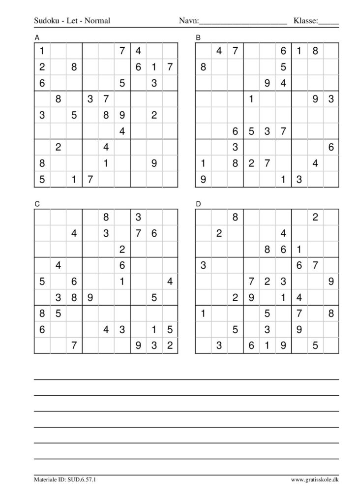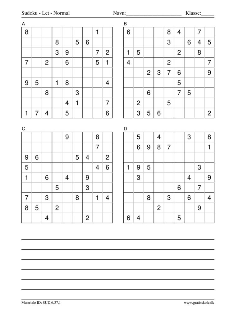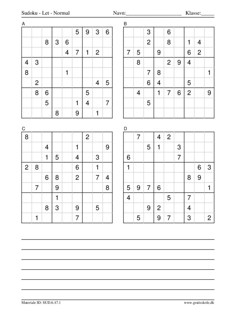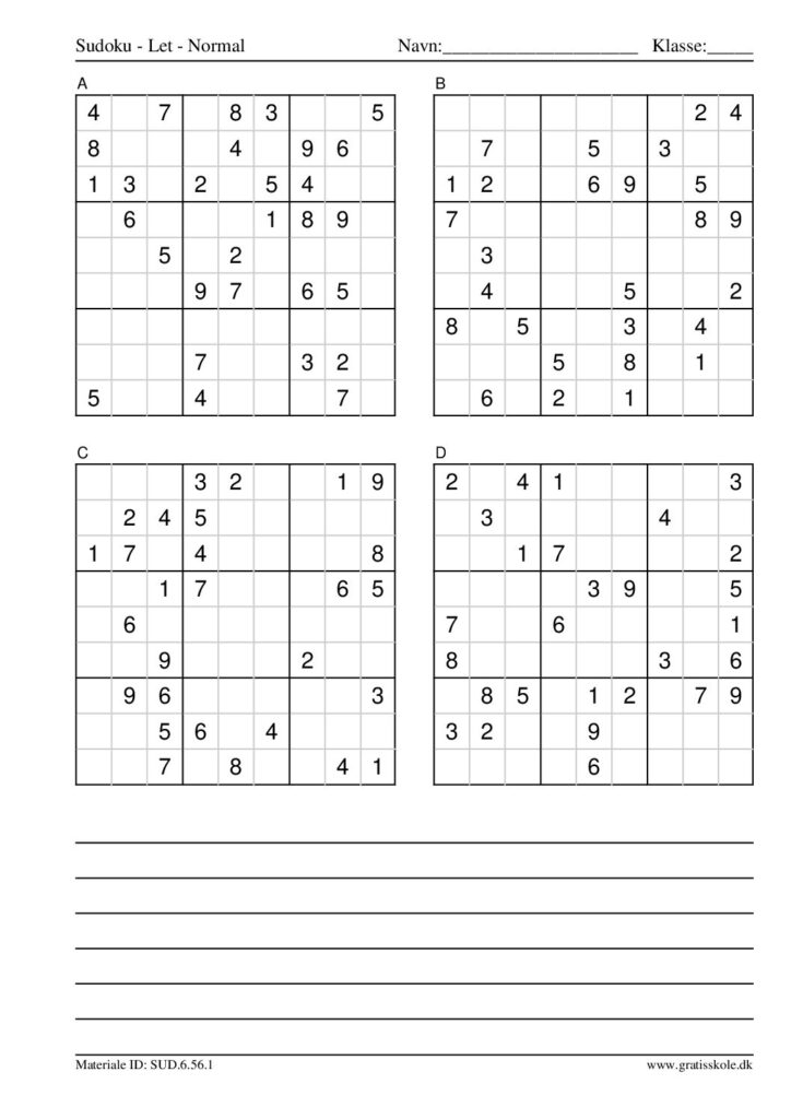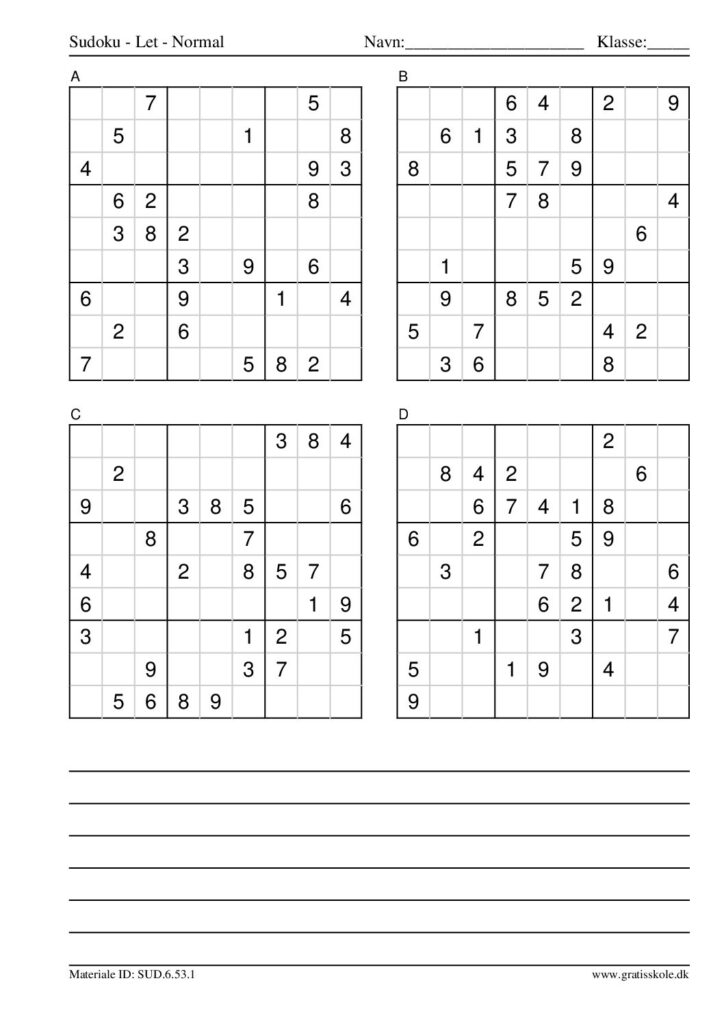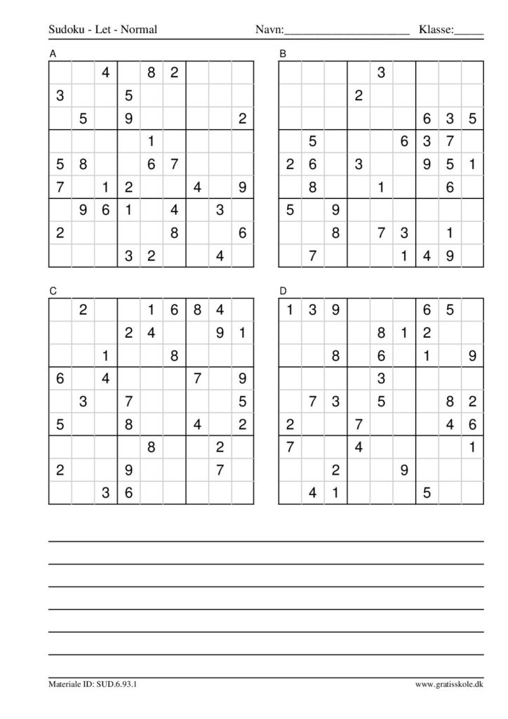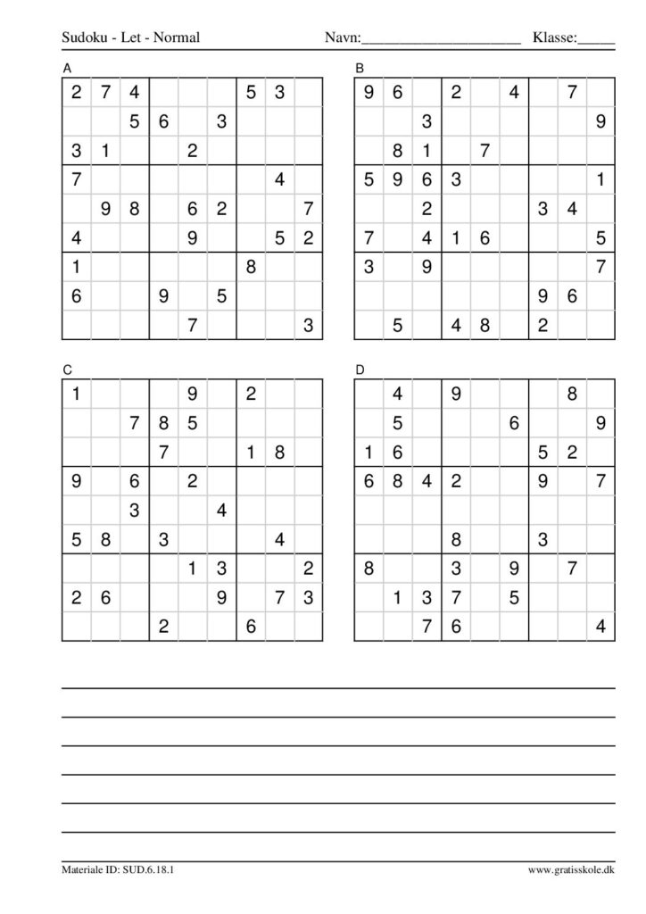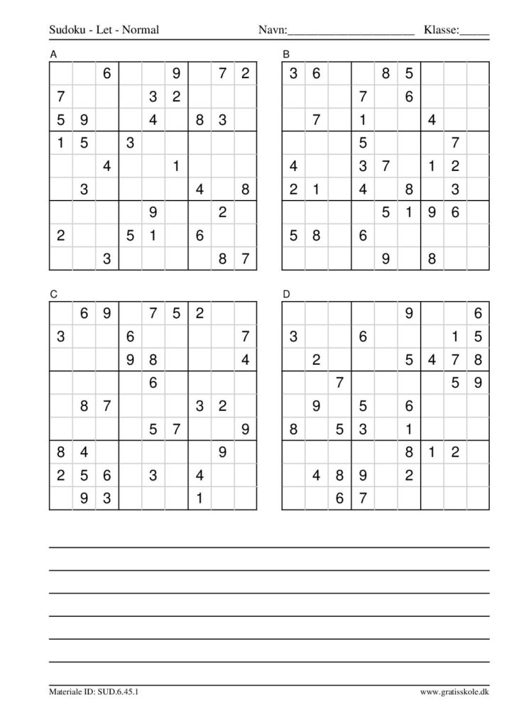 Her finder du en liste med gratis sudoku til print i niveauet “let”. Der er fire sudokuer på hvert ark. Klik på hvert billede for at blive ført videre til PDF-filen, hvor hver sudoku gratis kan downloades.