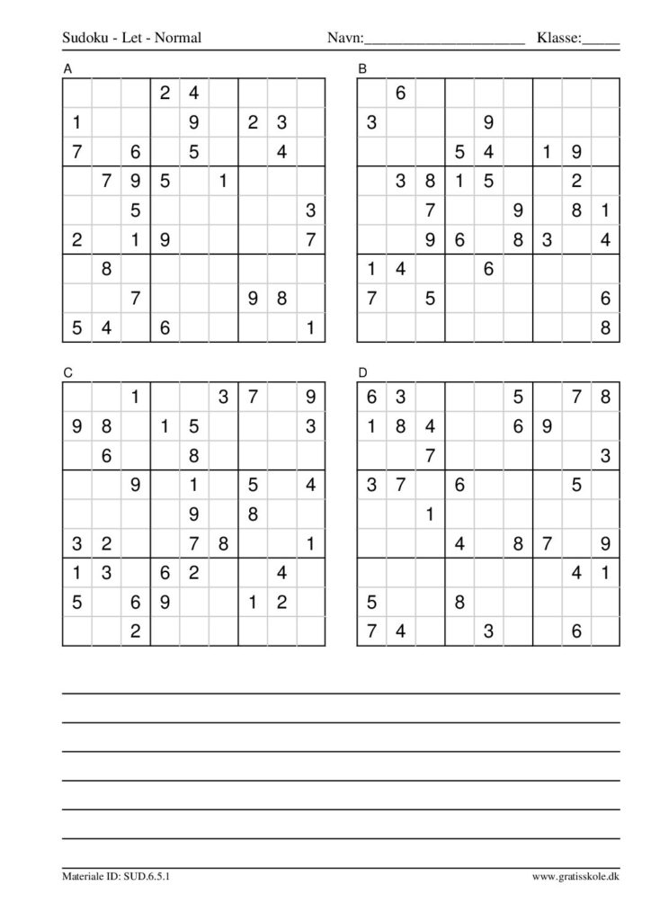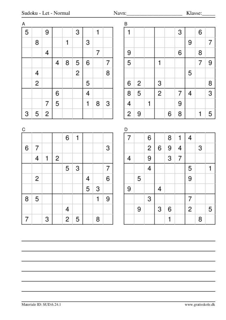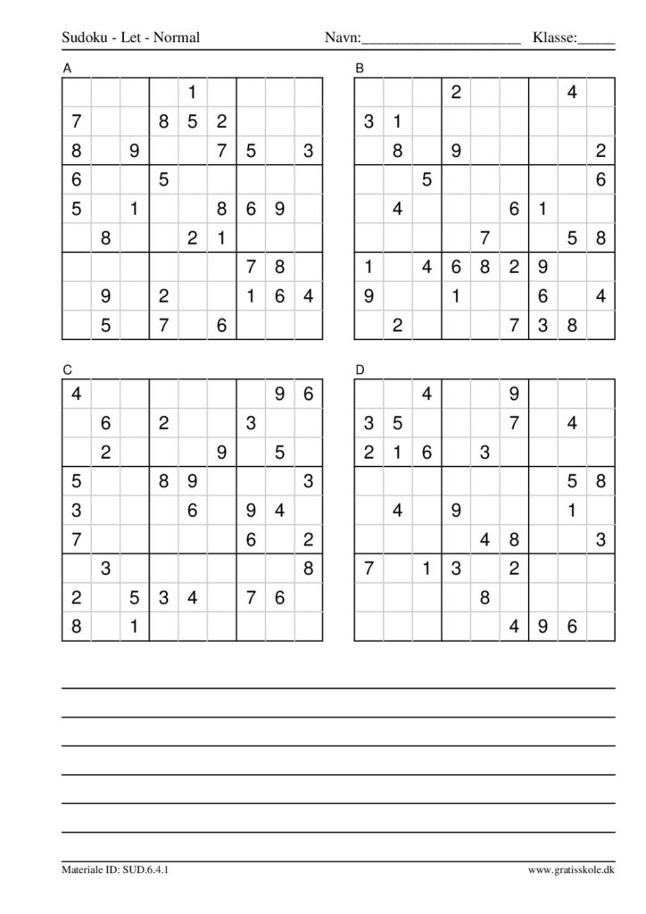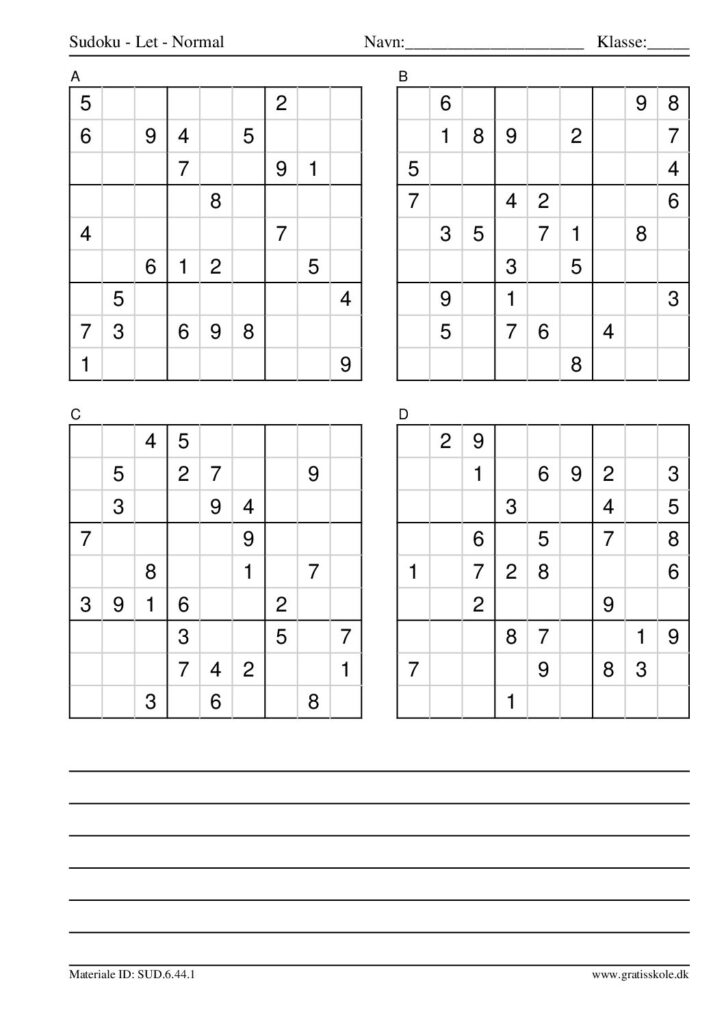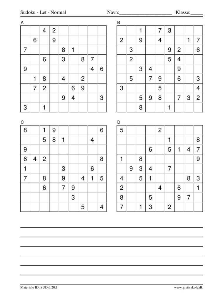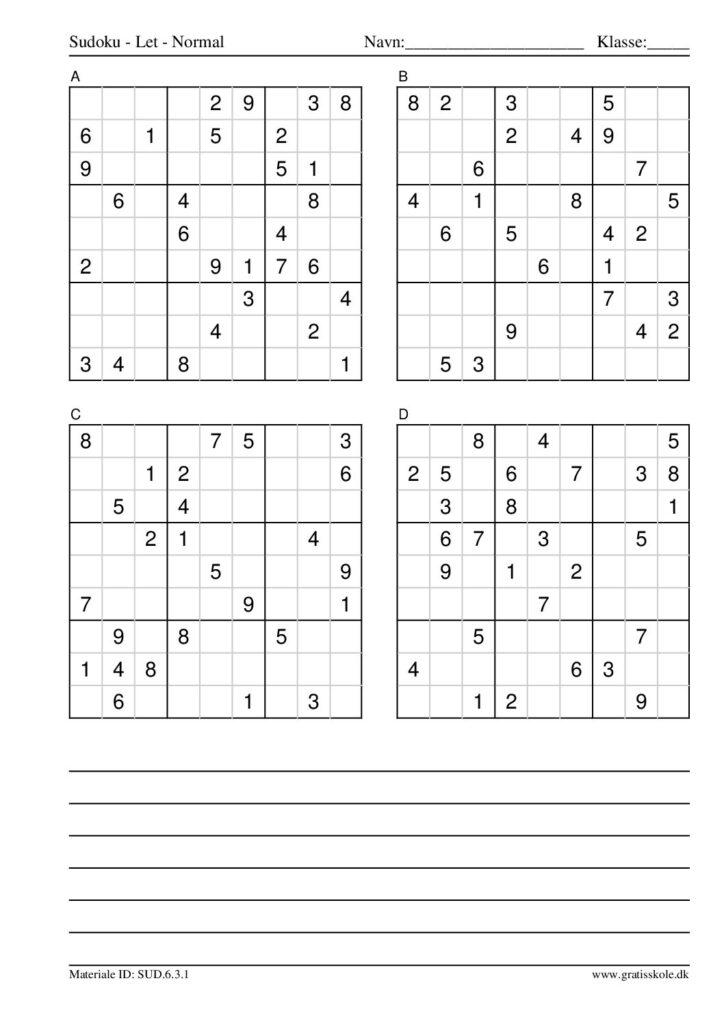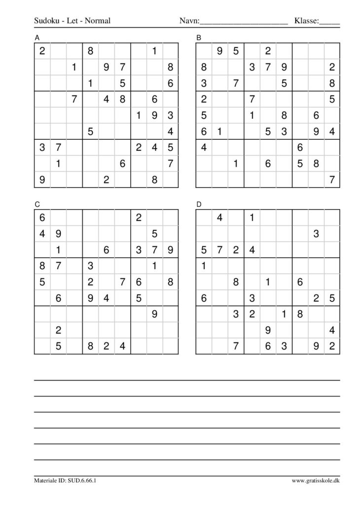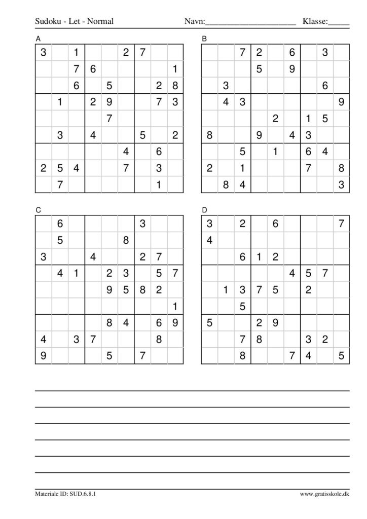 Her finder du en liste med gratis sudoku til print i niveauet “let”. Der er fire sudokuer på hvert ark. Klik på hvert billede for at blive ført videre til PDF-filen, hvor hver sudoku gratis kan downloades.