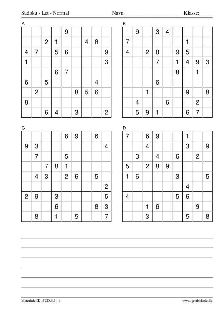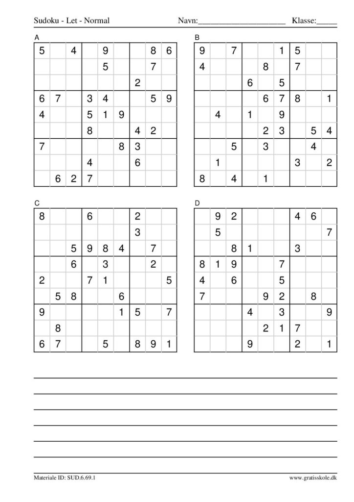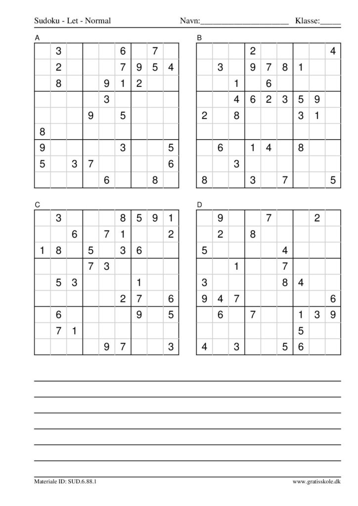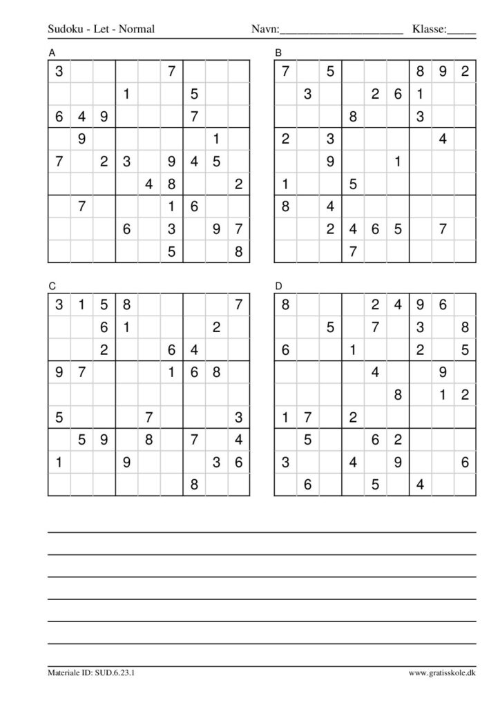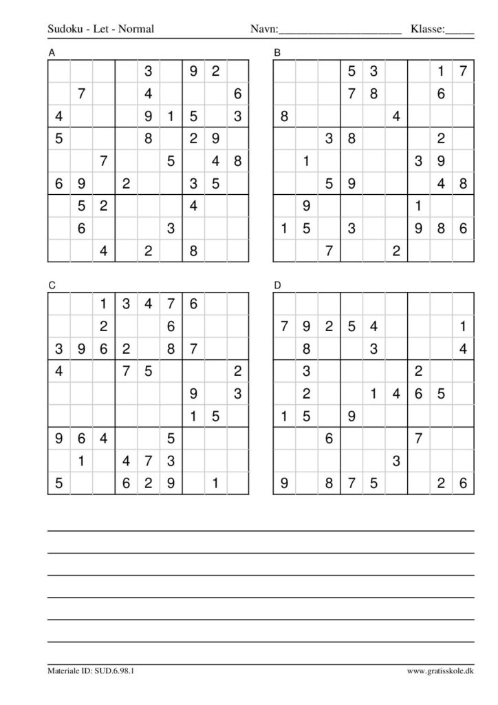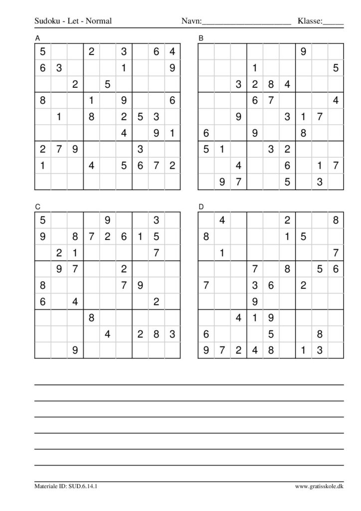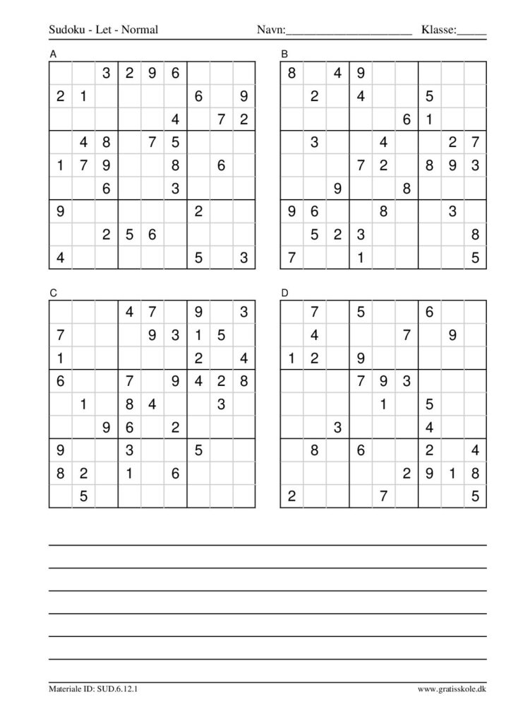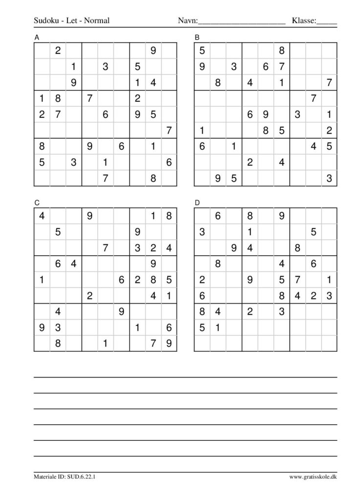 Her finder du en liste med gratis sudoku til print i niveauet “let”. Der er fire sudokuer på hvert ark. Klik på hvert billede for at blive ført videre til PDF-filen, hvor hver sudoku gratis kan downloades.