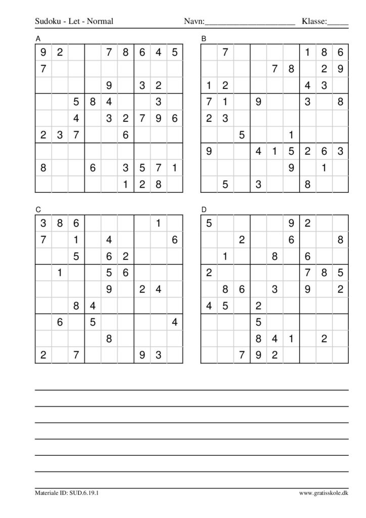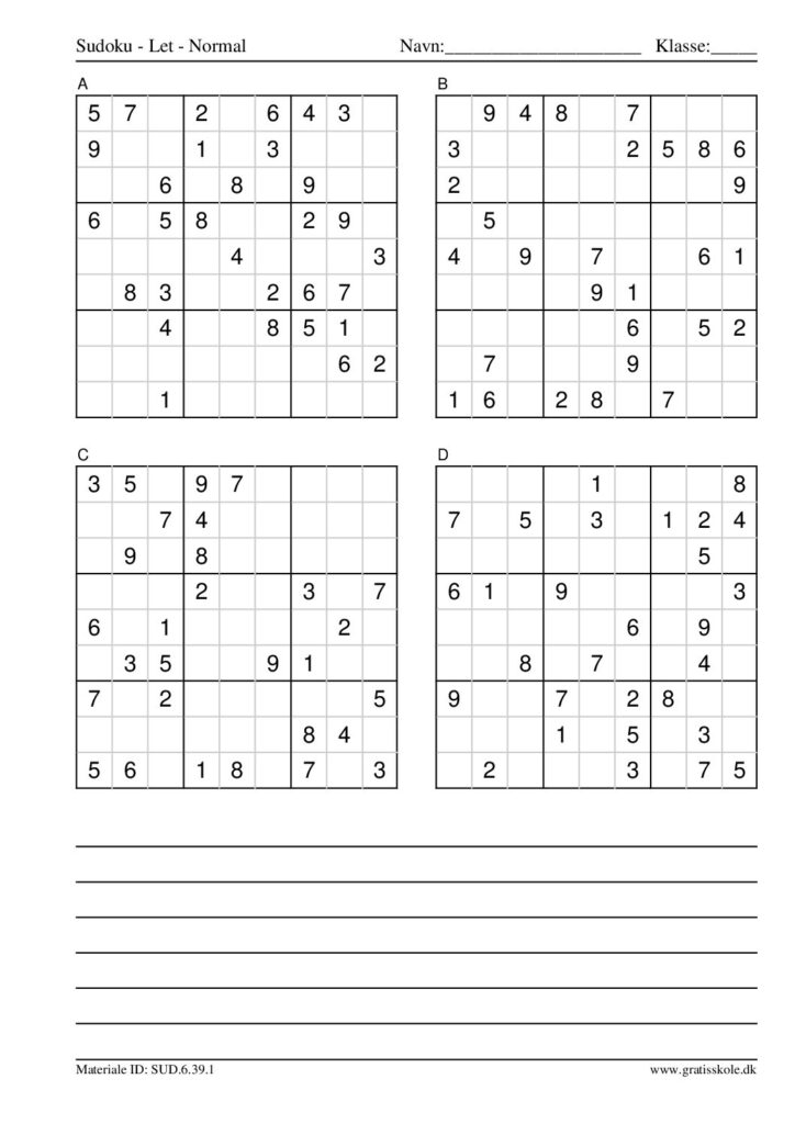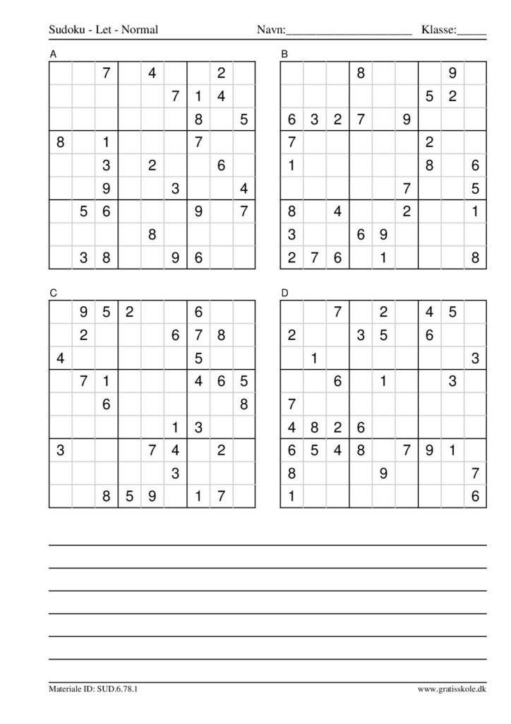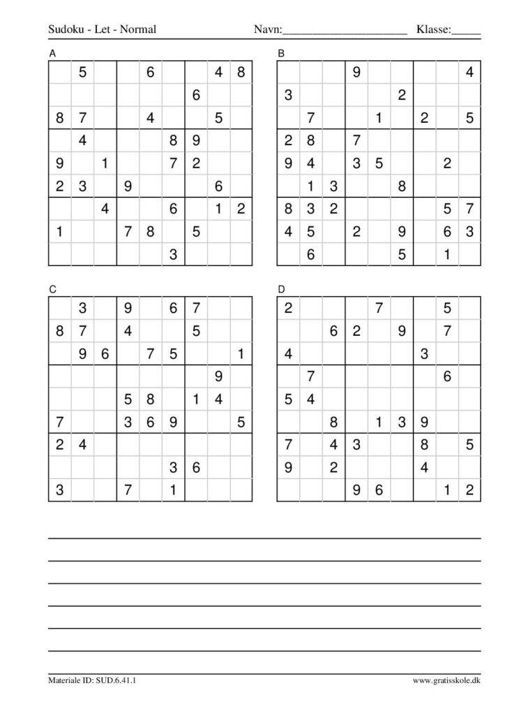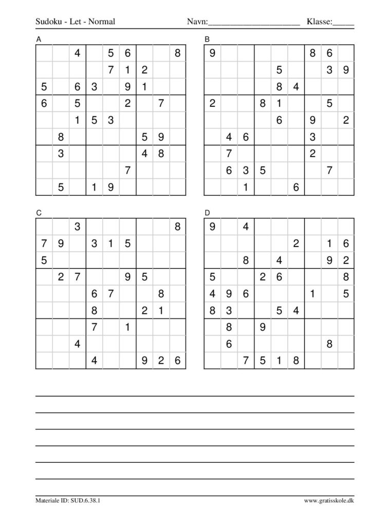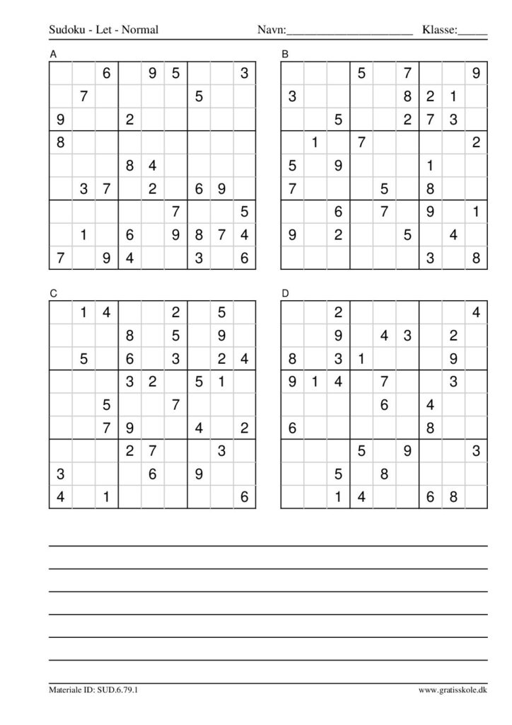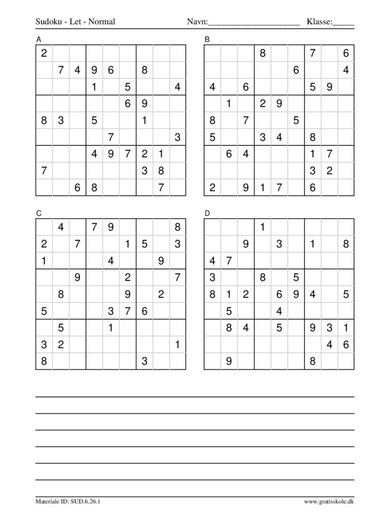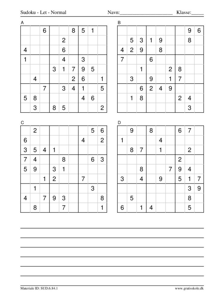 Her finder du en liste med gratis sudoku til print i niveauet “let”. Der er fire sudokuer på hvert ark. Klik på hvert billede for at blive ført videre til PDF-filen, hvor hver sudoku gratis kan downloades.