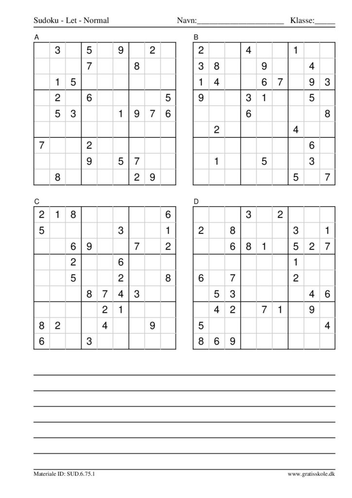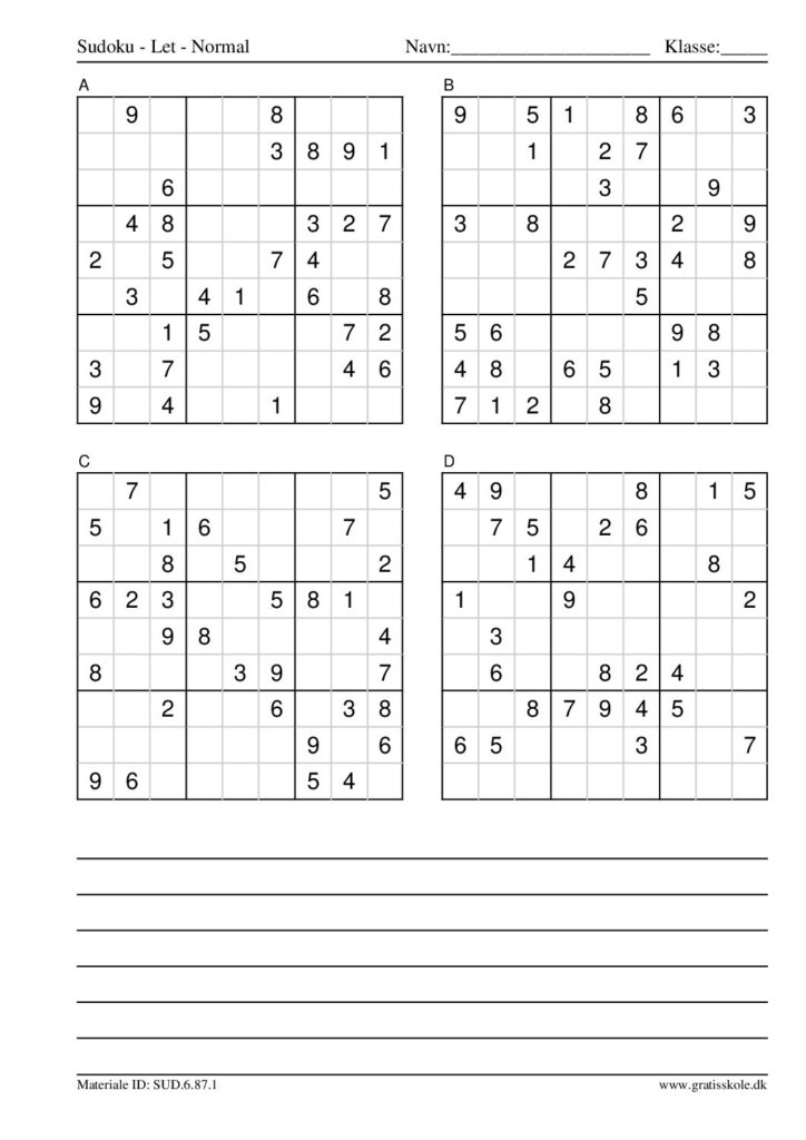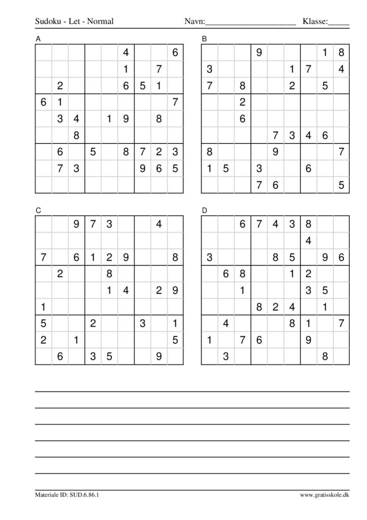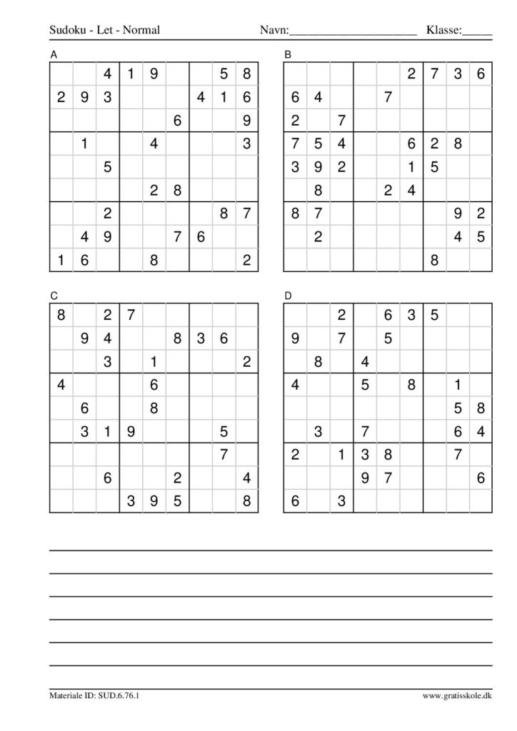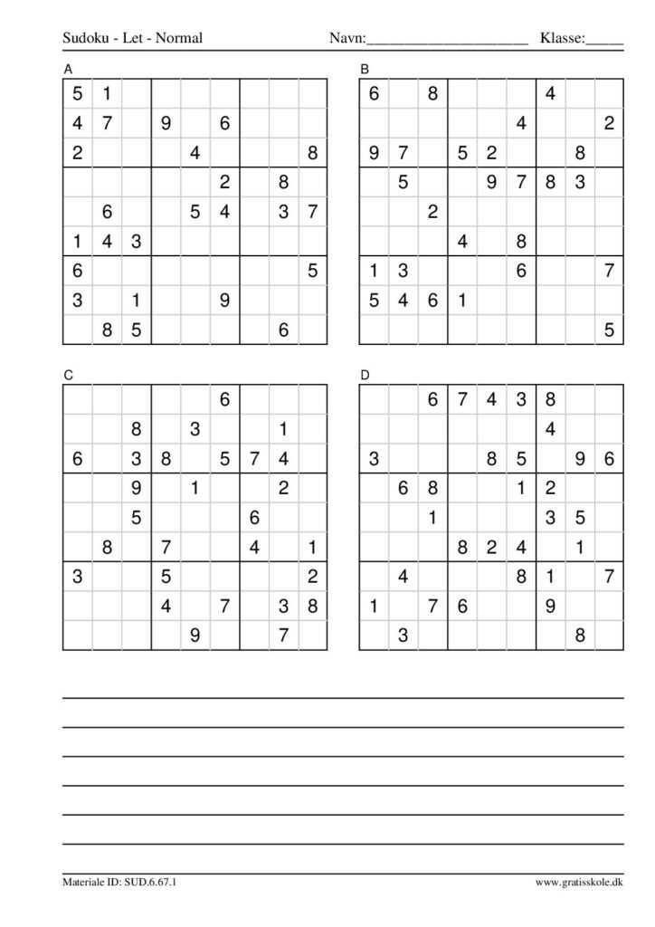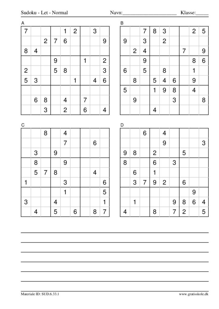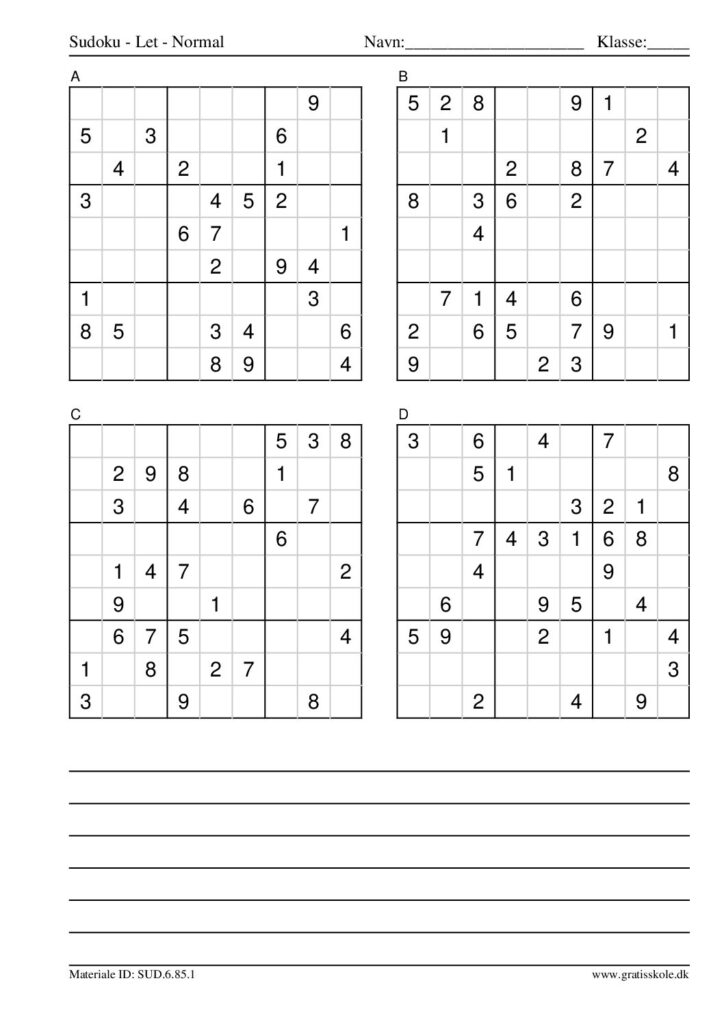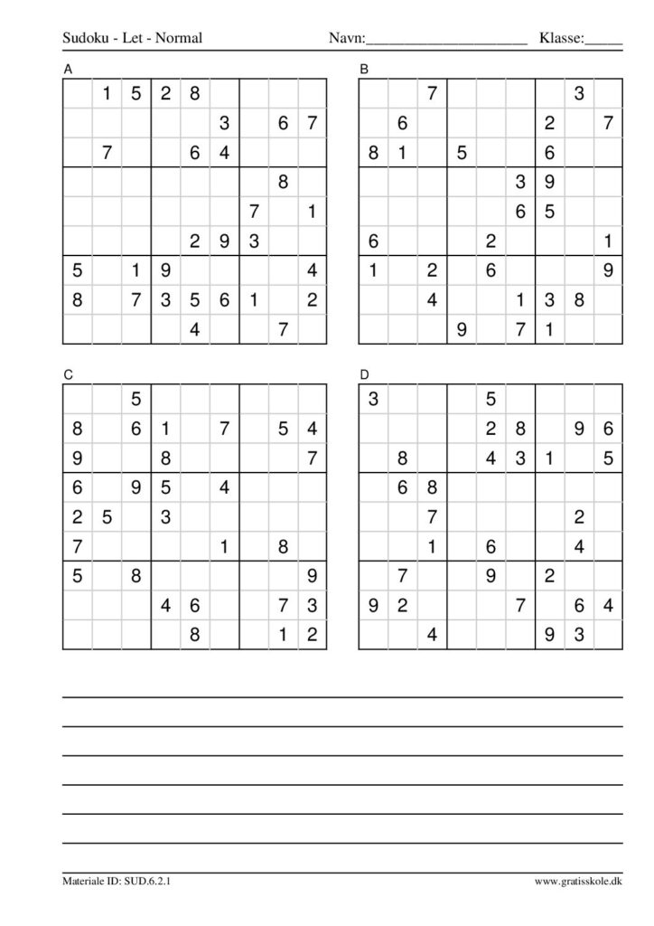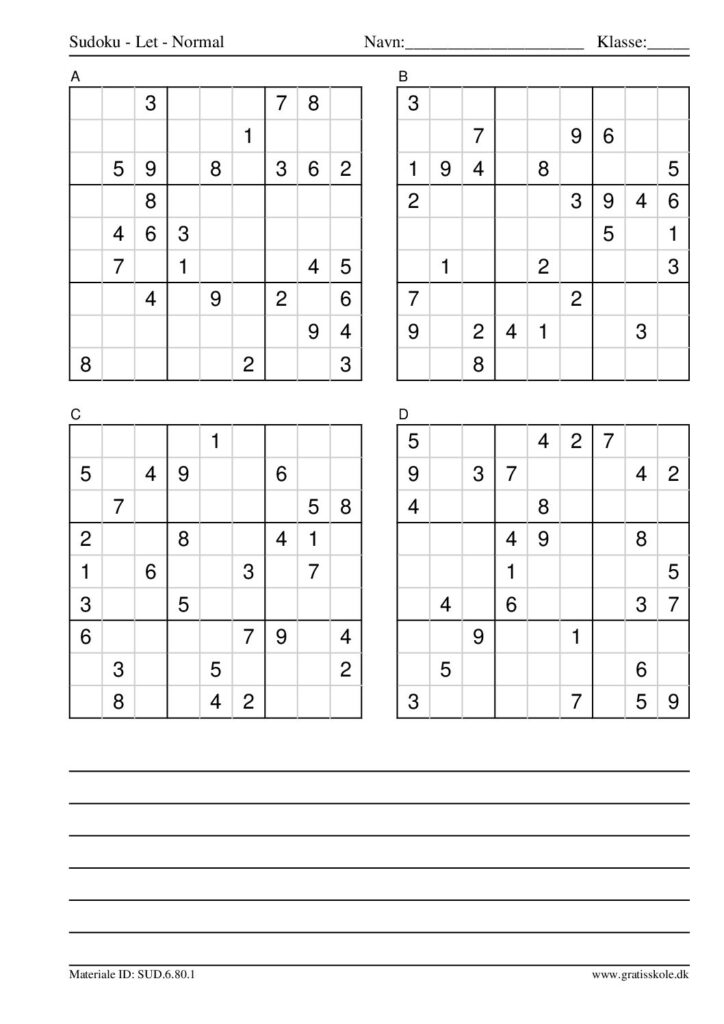 Her finder du en liste med gratis sudoku til print i niveauet “let”. Der er fire sudokuer på hvert ark. Klik på hvert billede for at blive ført videre til PDF-filen, hvor hver sudoku gratis kan downloades.