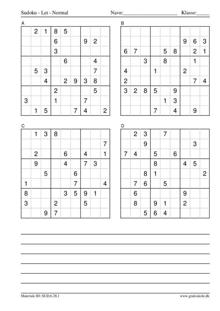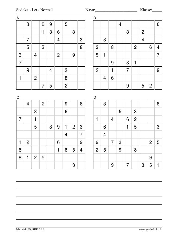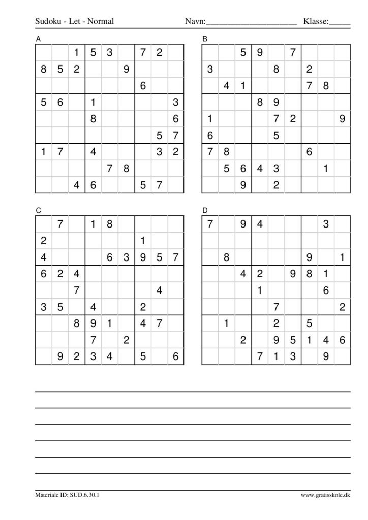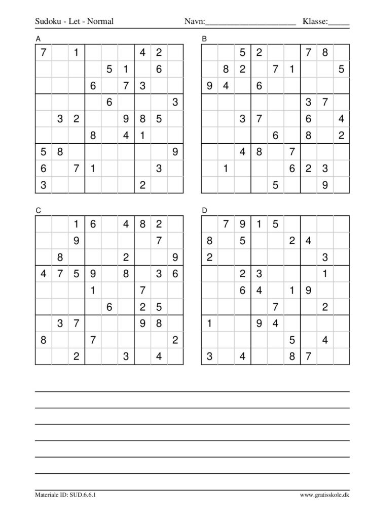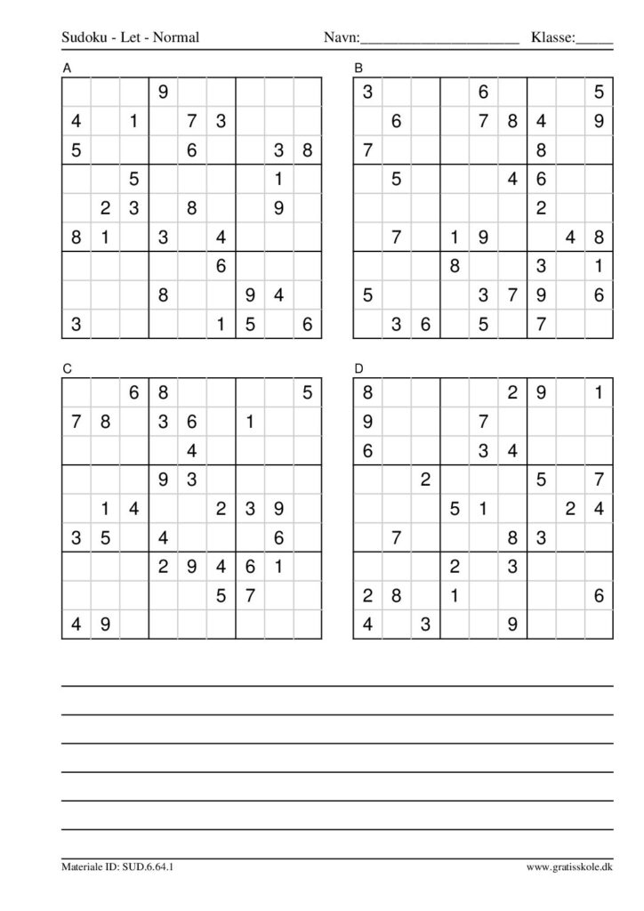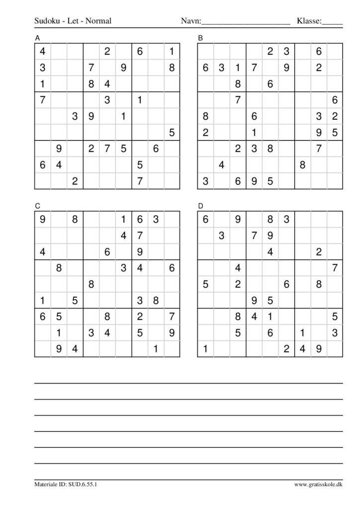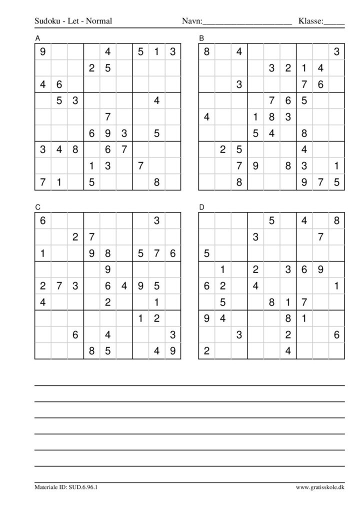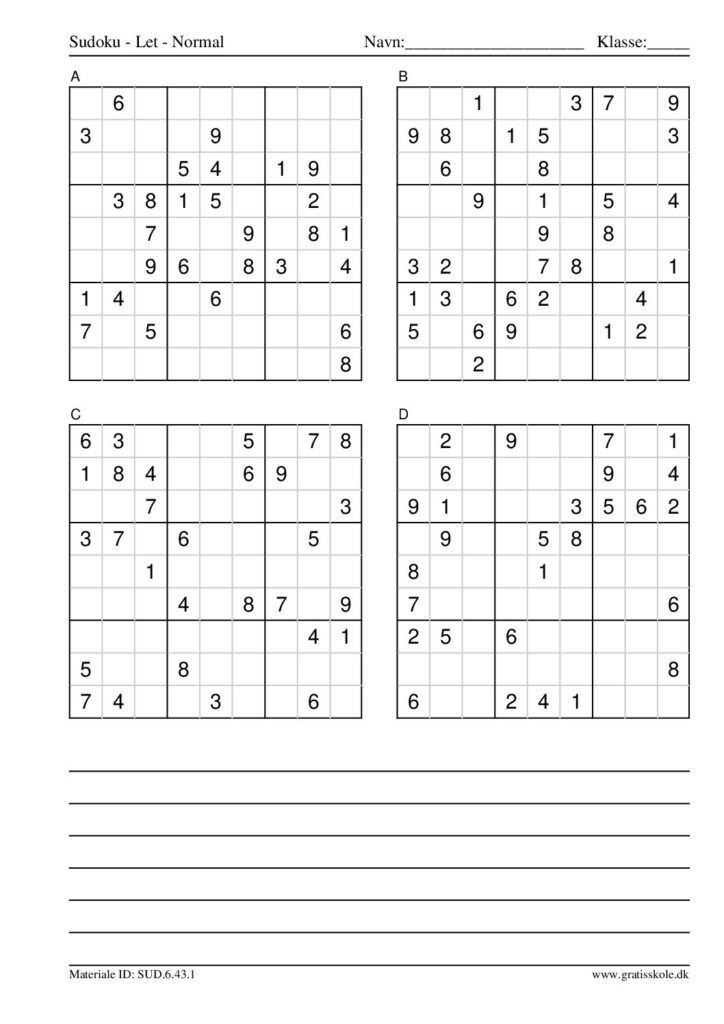 Her finder du en liste med gratis sudoku til print i niveauet “let”. Der er fire sudokuer på hvert ark. Klik på hvert billede for at blive ført videre til PDF-filen, hvor hver sudoku gratis kan downloades.