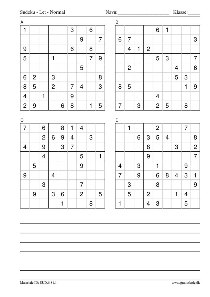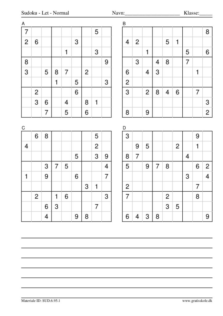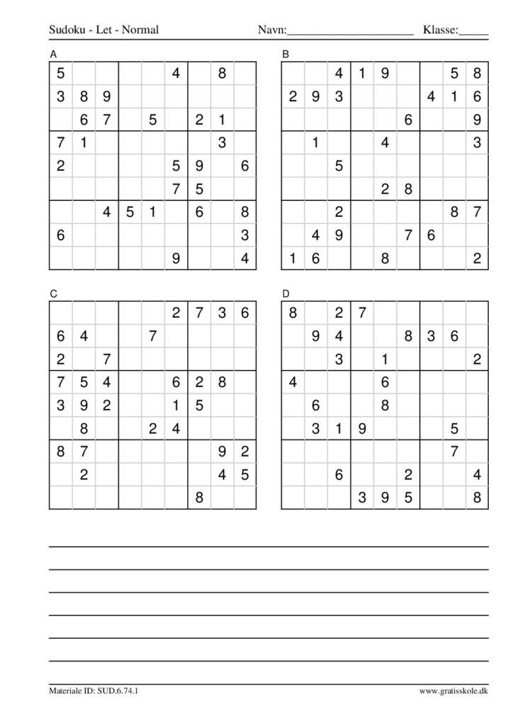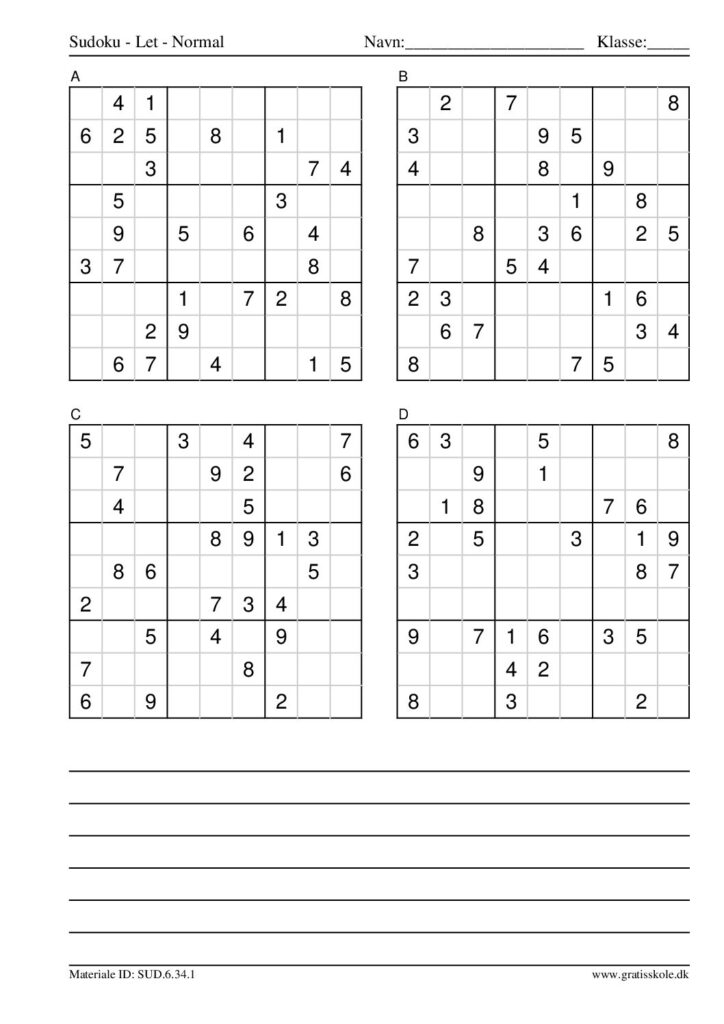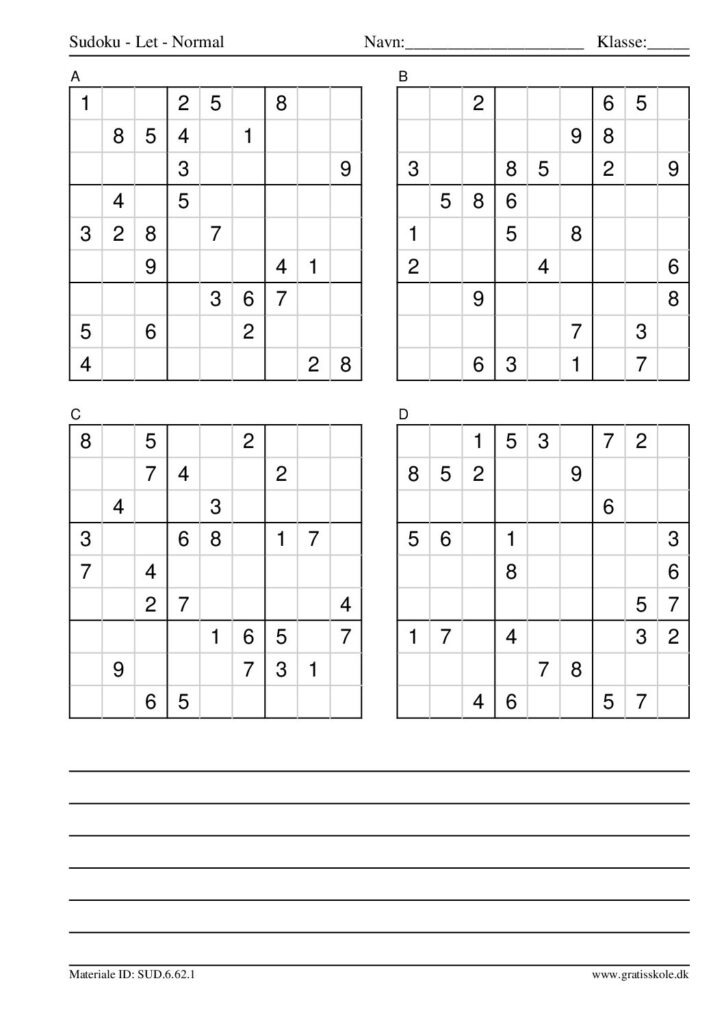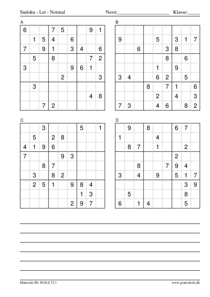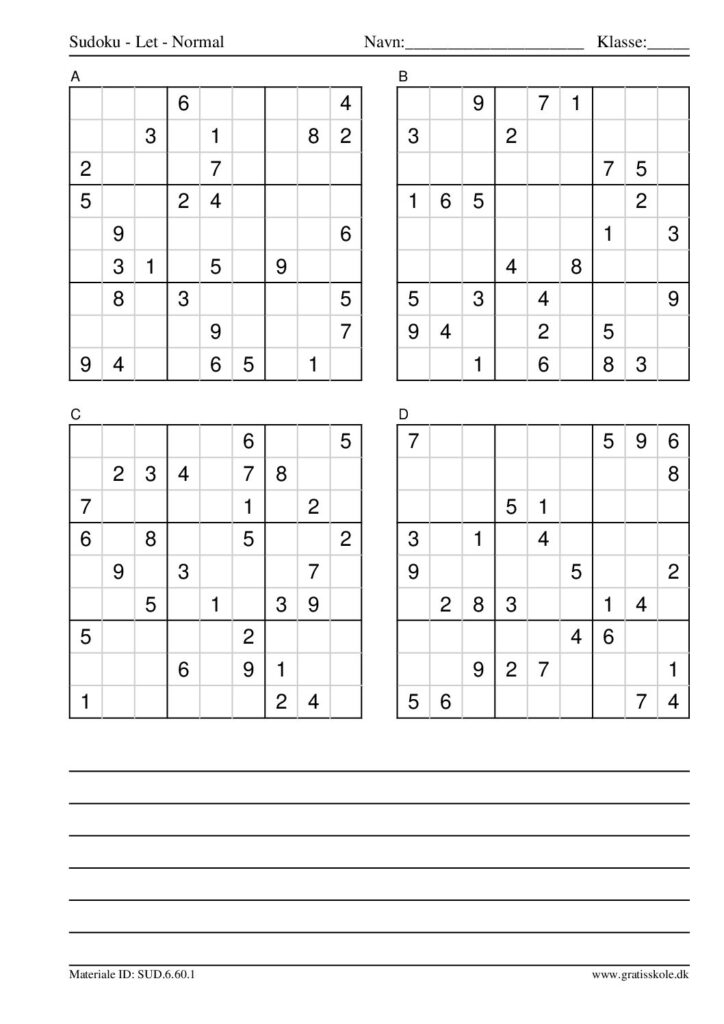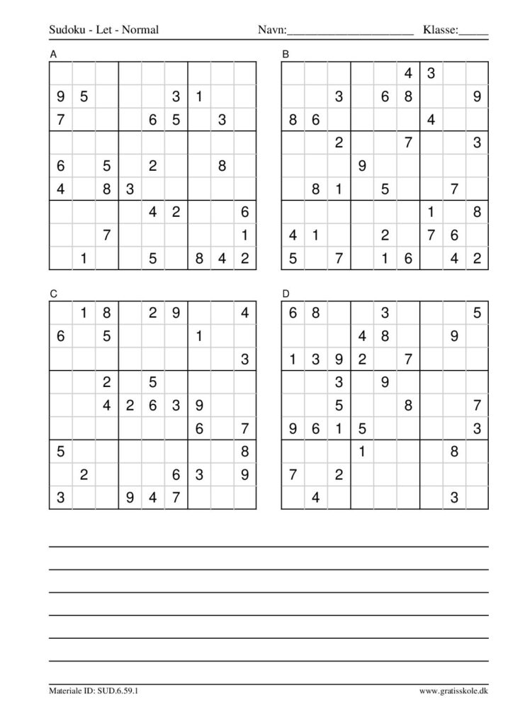 Her finder du en liste med gratis sudoku til print i niveauet “let”. Der er fire sudokuer på hvert ark. Klik på hvert billede for at blive ført videre til PDF-filen, hvor hver sudoku gratis kan downloades.