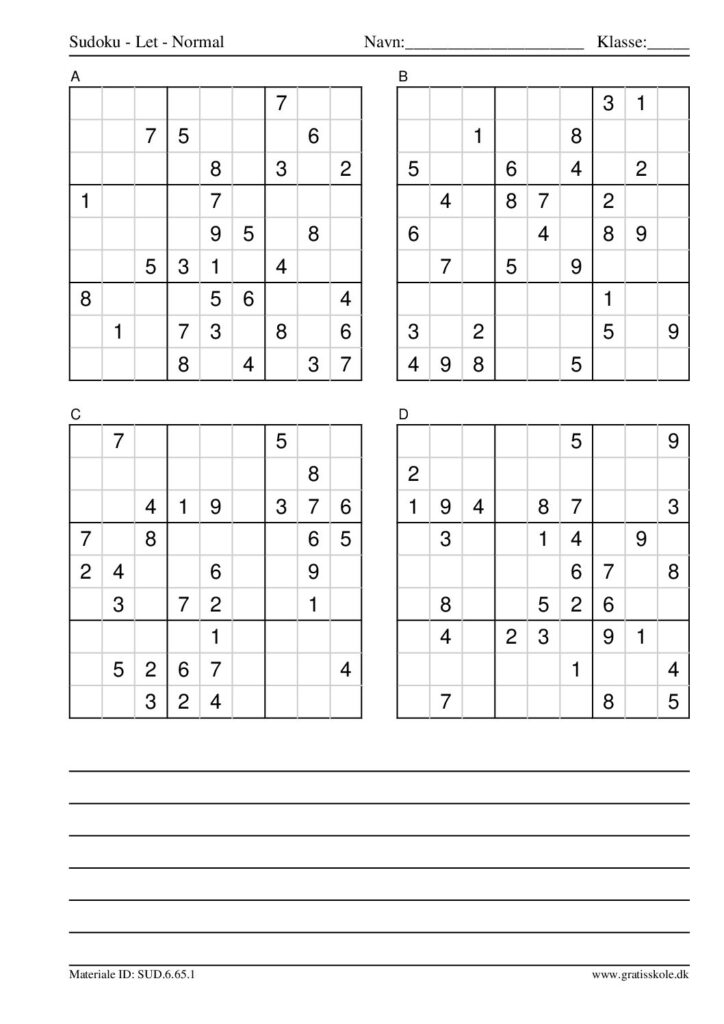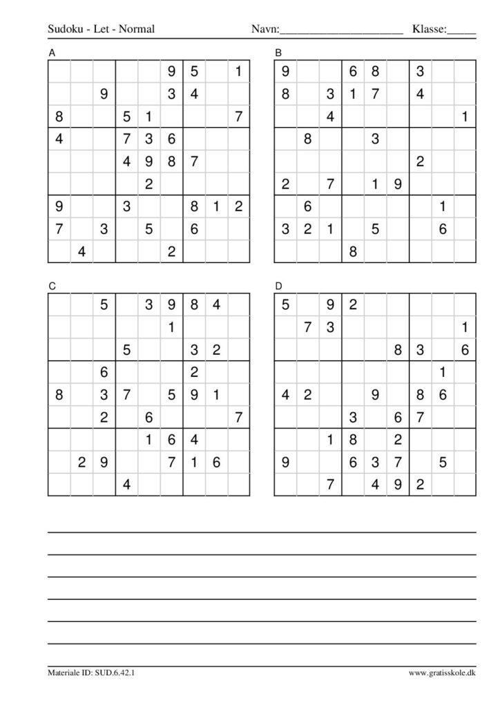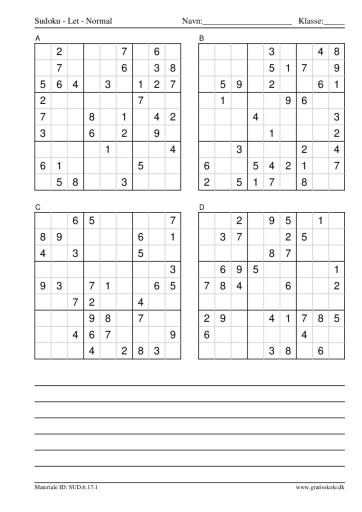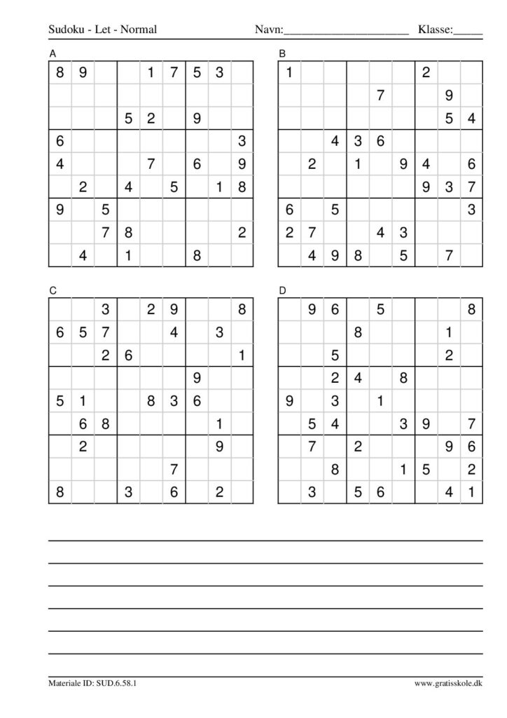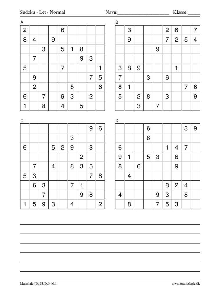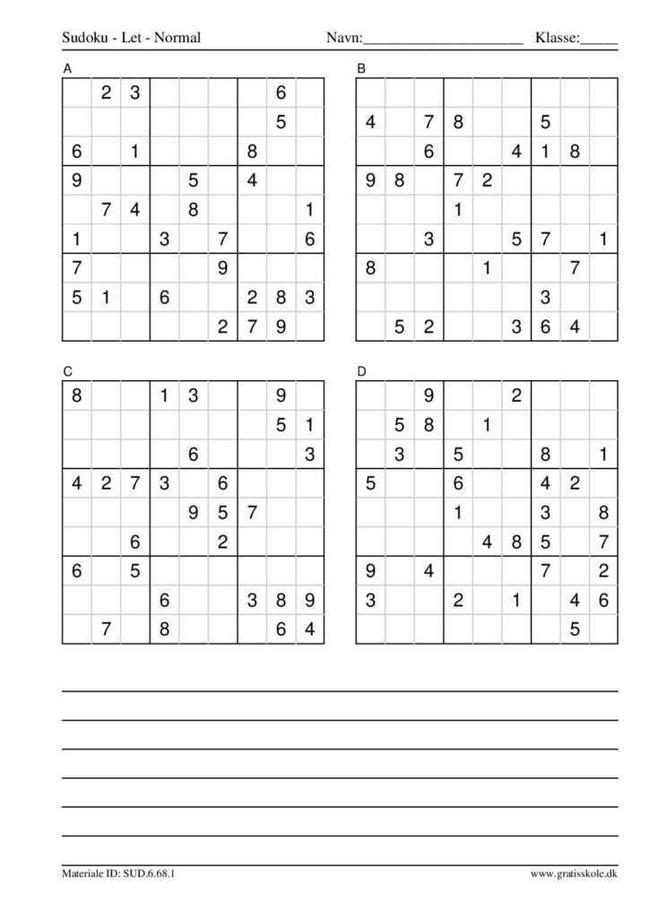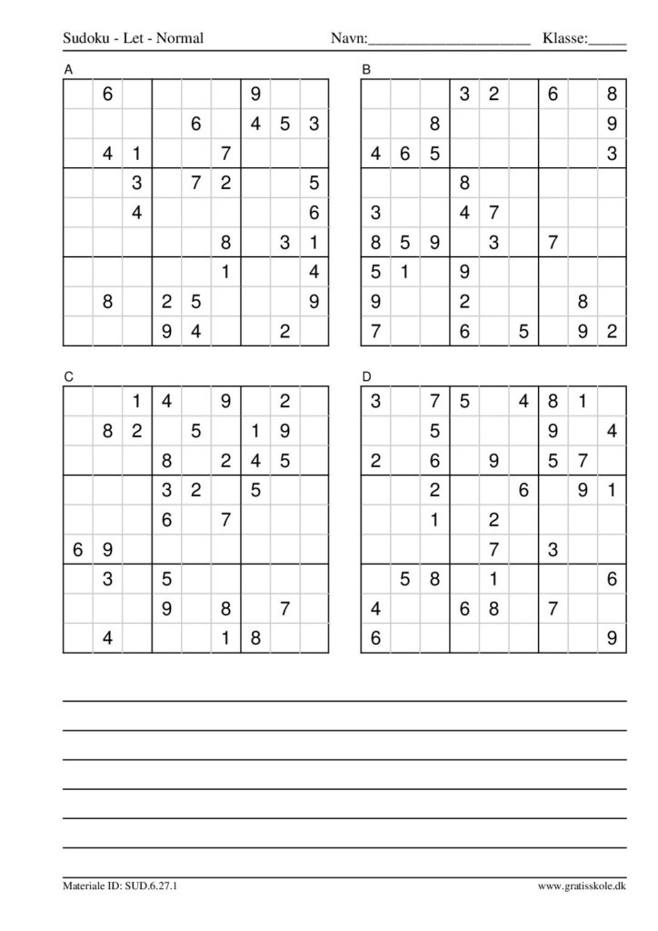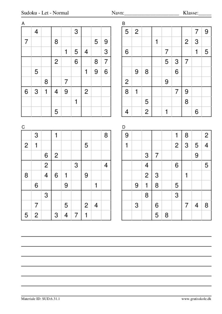 Her finder du en liste med gratis sudoku til print i niveauet “let”. Der er fire sudokuer på hvert ark. Klik på hvert billede for at blive ført videre til PDF-filen, hvor hver sudoku gratis kan downloades.