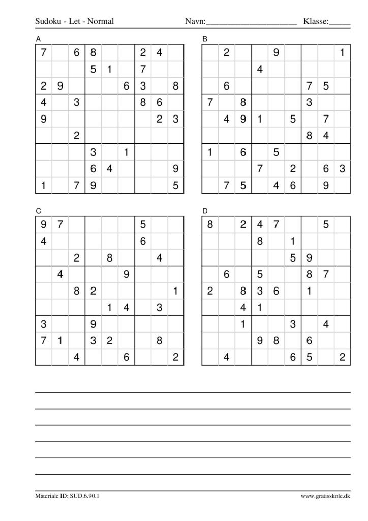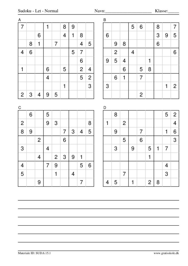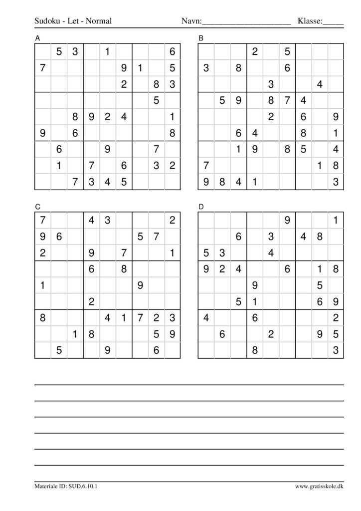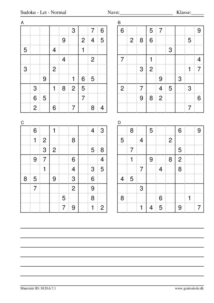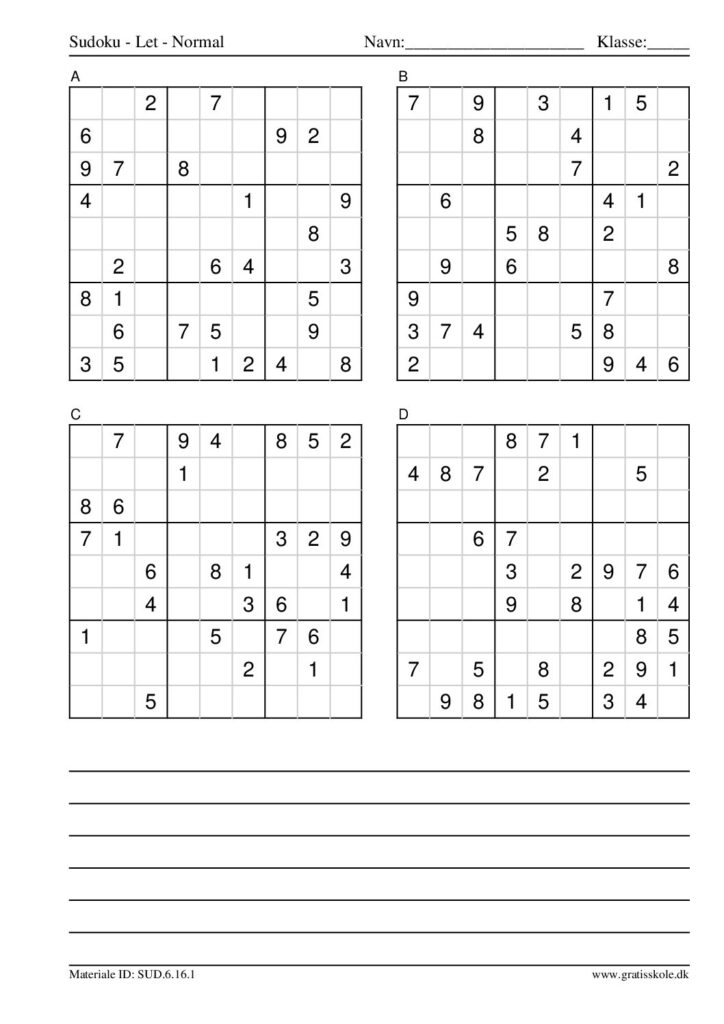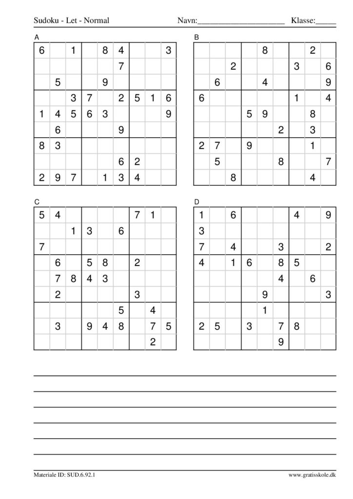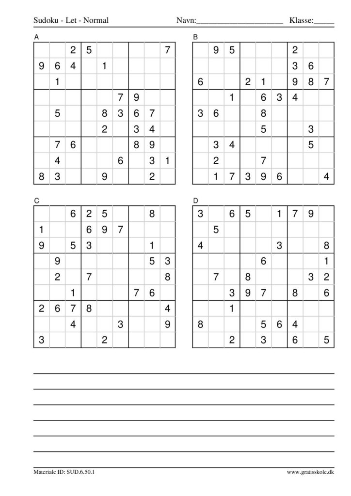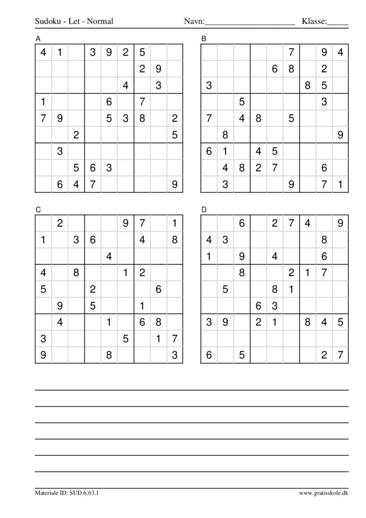 Her finder du en liste med gratis sudoku til print i niveauet “let”. Der er fire sudokuer på hvert ark. Klik på hvert billede for at blive ført videre til PDF-filen, hvor hver sudoku gratis kan downloades.