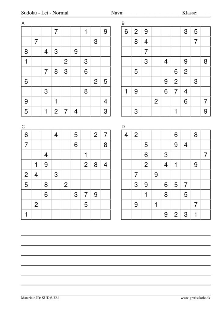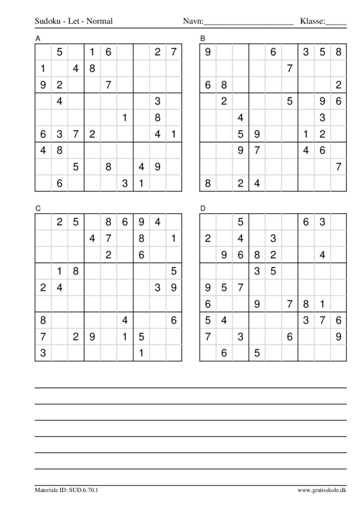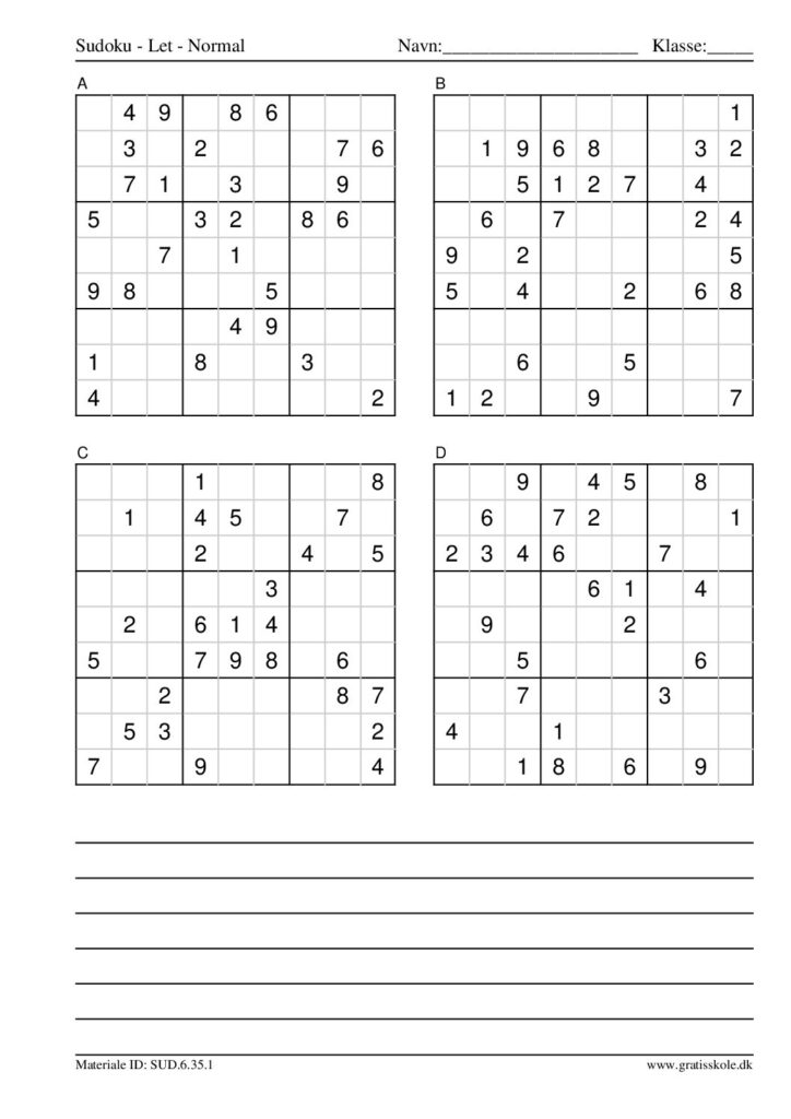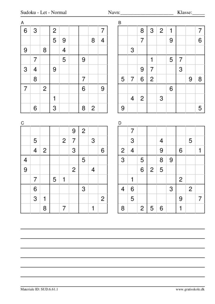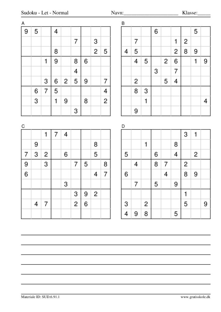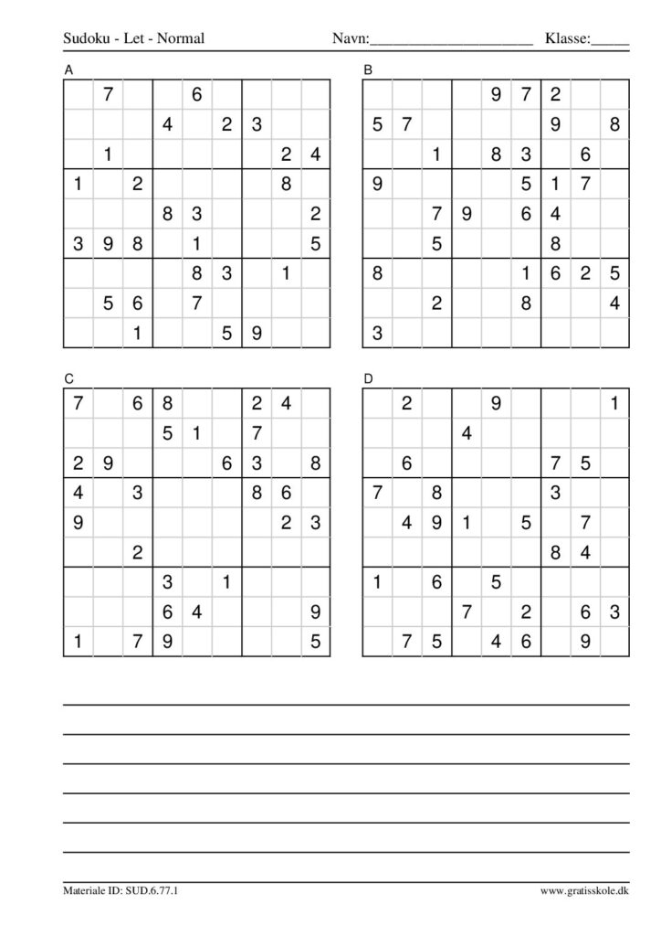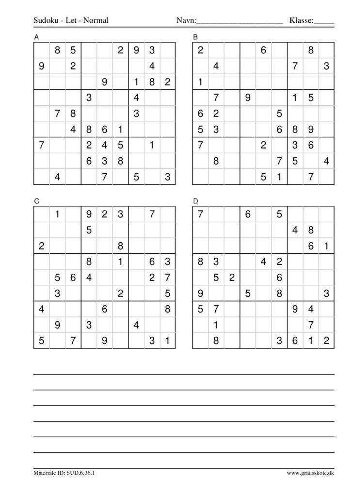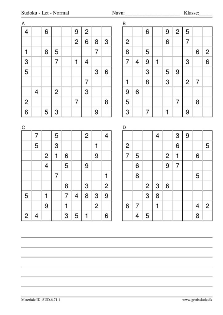 Her finder du en liste med gratis sudoku til print i niveauet “let”. Der er fire sudokuer på hvert ark. Klik på hvert billede for at blive ført videre til PDF-filen, hvor hver sudoku gratis kan downloades.